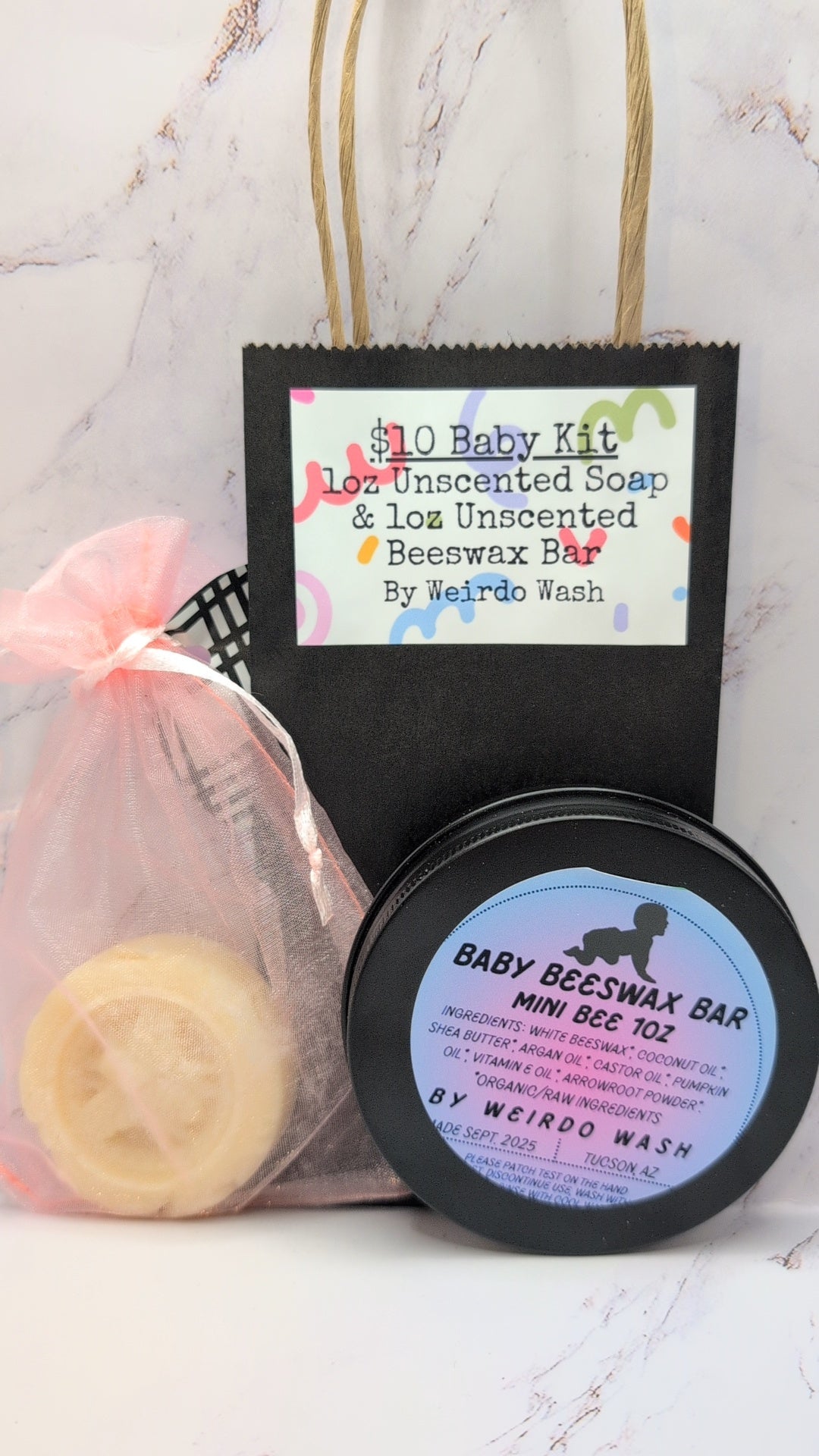 This bag includes a small bee soap & a small beeswax bar for after the bath or on the go.