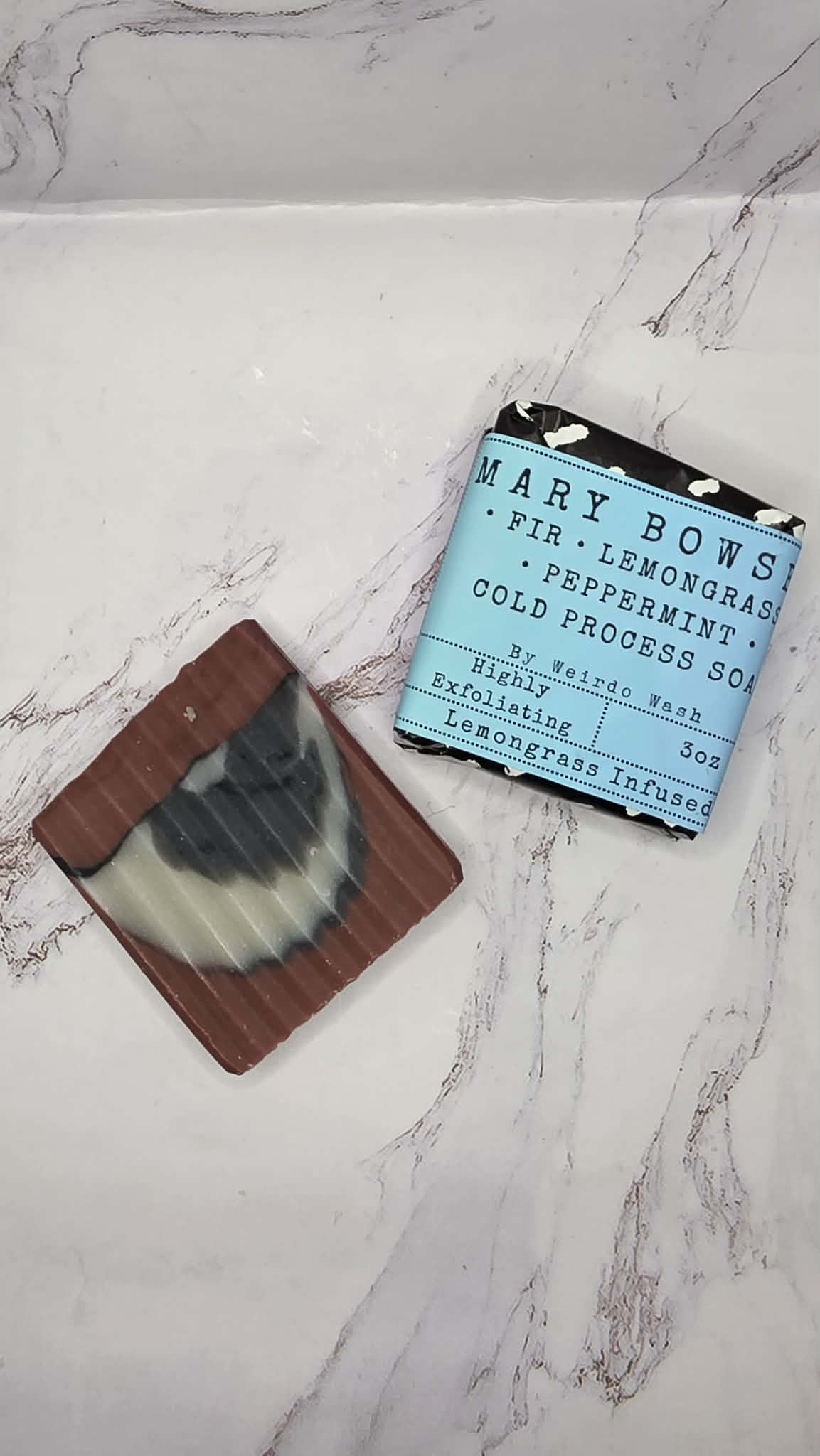 Highly Exfoliating Fir, Lemongrass, & Peppermint Cold Process Soap infused with Lemongrass.
