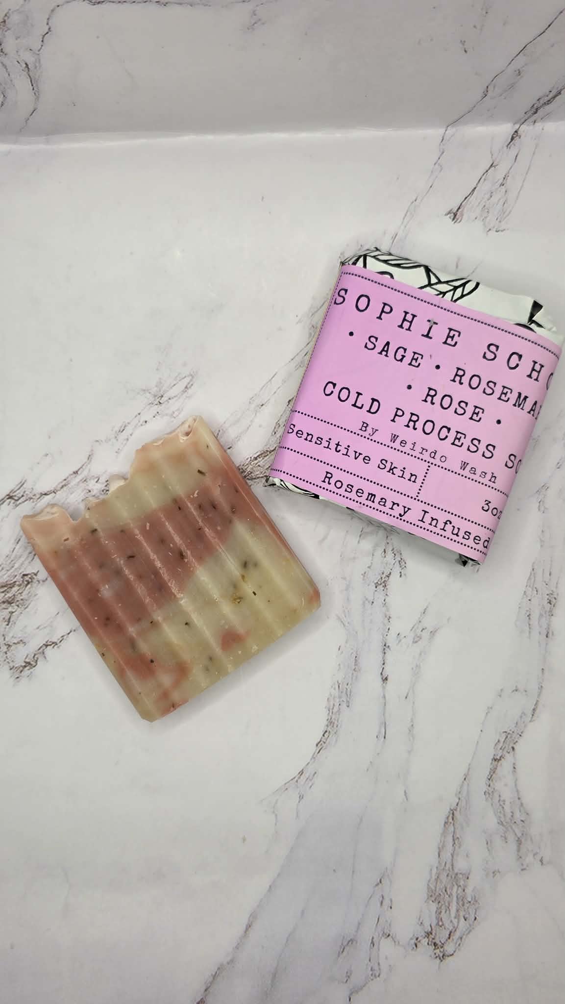 Sensitive Skin Friendly Sage, Rosemary, & Rose Cold Process Soap infused with Rosemary.